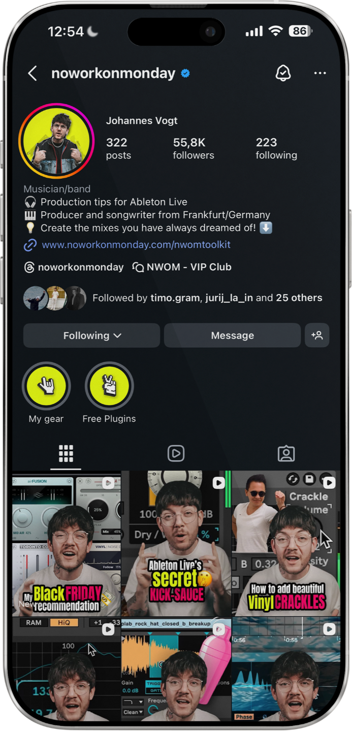 You might now me from my Instagram and TikTok channels. On these platforms I give daily tips and tricks about music production and workflow tips for Ableton Live.
